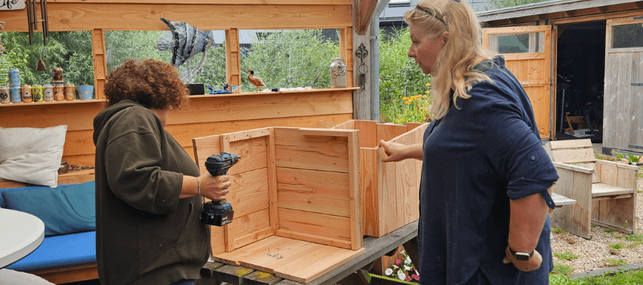 Ik ben op bezoek bij Giny en Eric, die samen met hun twee volwassen kinderen in Nobelhorst wonen. Ze zijn in 2019 naar Nobelhorst verhuisd, waar ze hun eigen huis hebben laten bouwen. In datzelfde jaar kwam er een oproep voorbij om Groene Buur te worden en Giny meldde zich (met Eric als ‘sidekick’) direct aan.